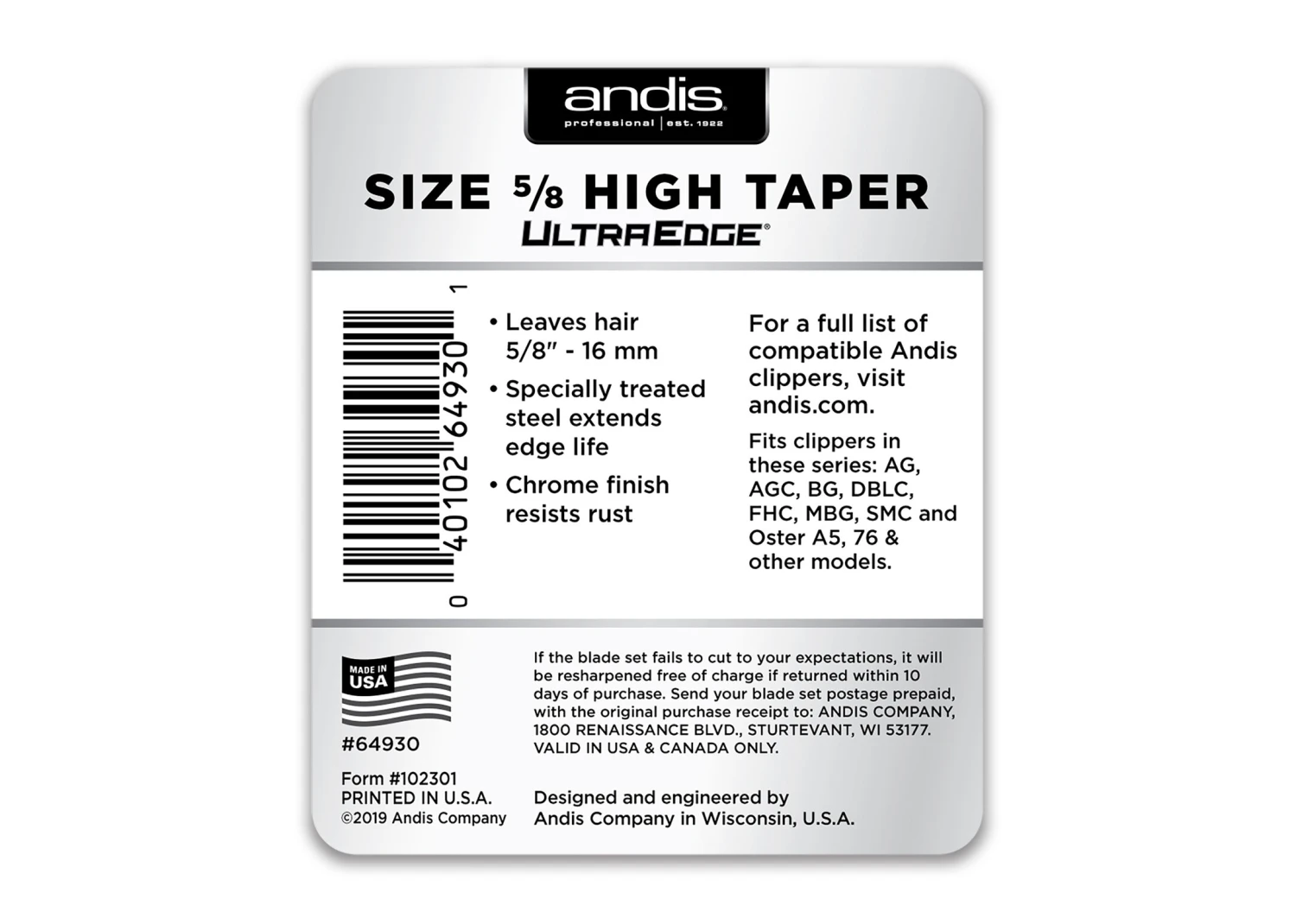 Made from hardened, finest grade tool steel, Andis have added carbon to the cutting edge, to create these unique Ultra Edge professional blades. These blades are ice tempered to stay sharper longer and are chrome plated to resist rust. Compatible with all Andis, Double K, Laube, Moser, Oster and Wahl professional clippers. The new 19mm model is the largest blade of its kind.