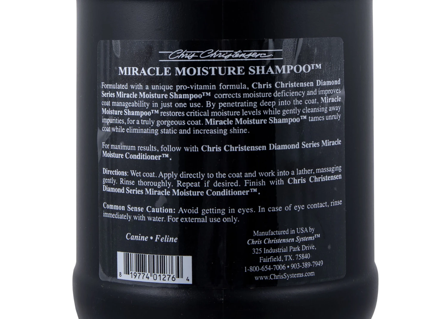 Chris Christensen Diamond Series Miracle Moisture Shampoo is formulated with a unique pro-vitamin formula to correct moisture deficiency and improve coat manageability.