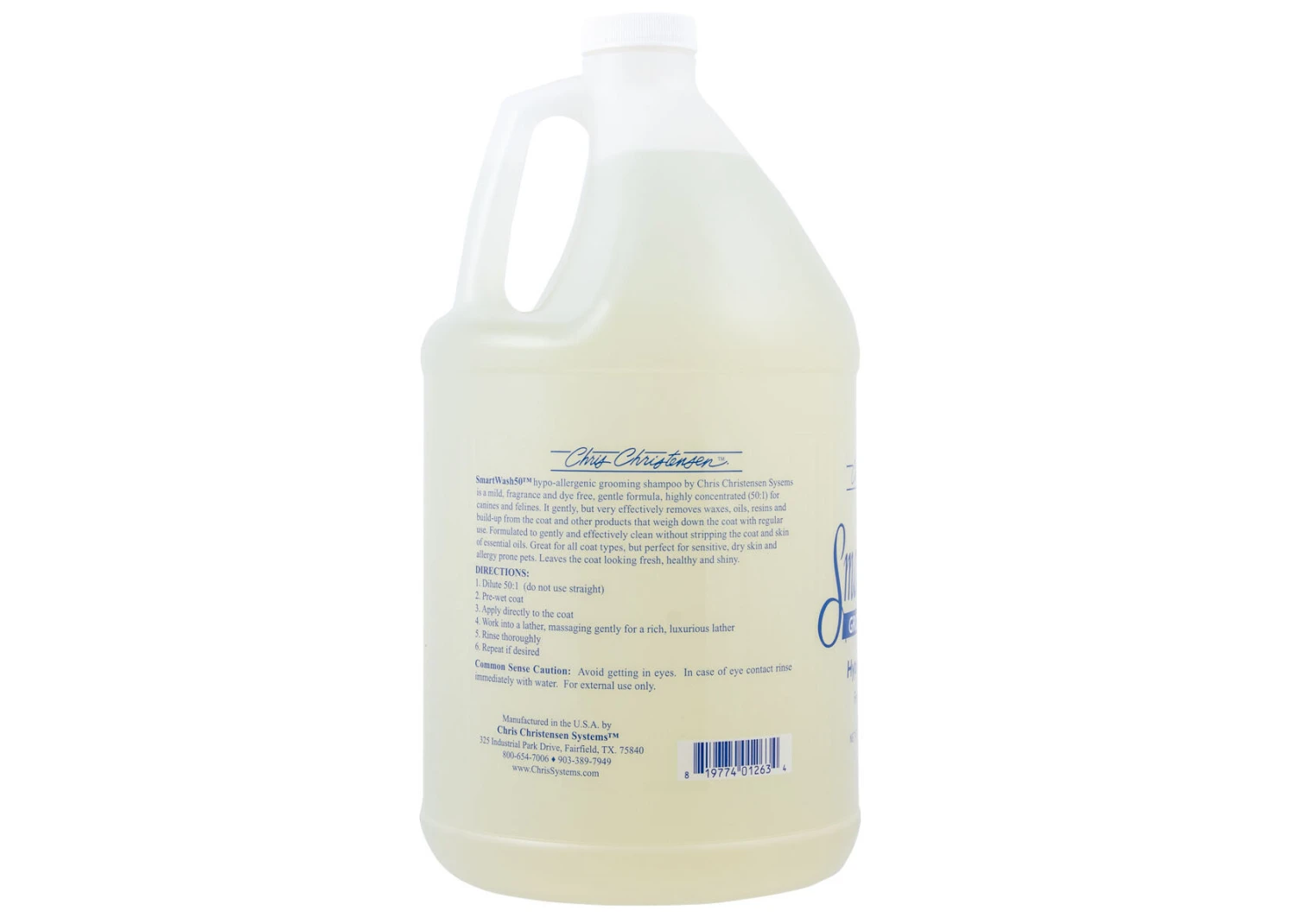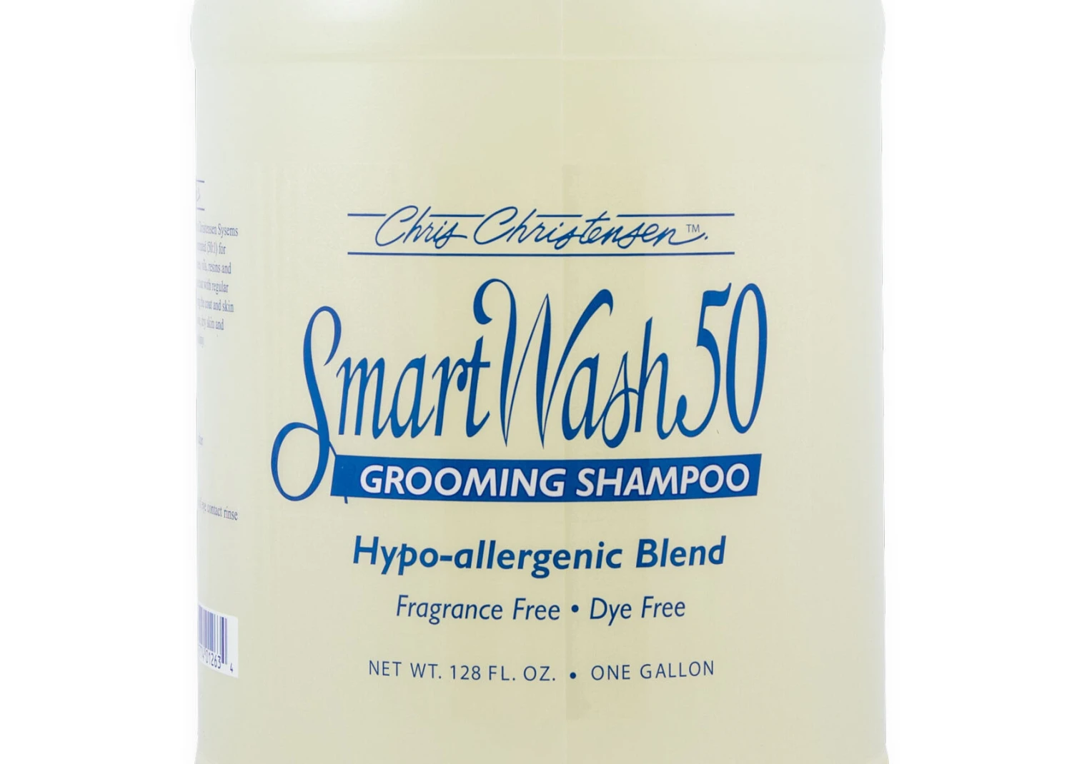 SmartWash50 Hypo-allergenic Blend grooming shampoo is a mild, fragrance and dye free, gentle formula, highly concentrated (50:1) for canines and felines. It gently, but very effectively removes waxes, oils, resins and build-up from the coat and other products that weigh down the coat with regular use. Formulated to gently and effectively clean without stripping the coat and skin of essential oils. Great for all coat types, but perfect for sensitive, dry skin and allergy prone pets. Leaves the coat looking fresh, healthy and shiny.