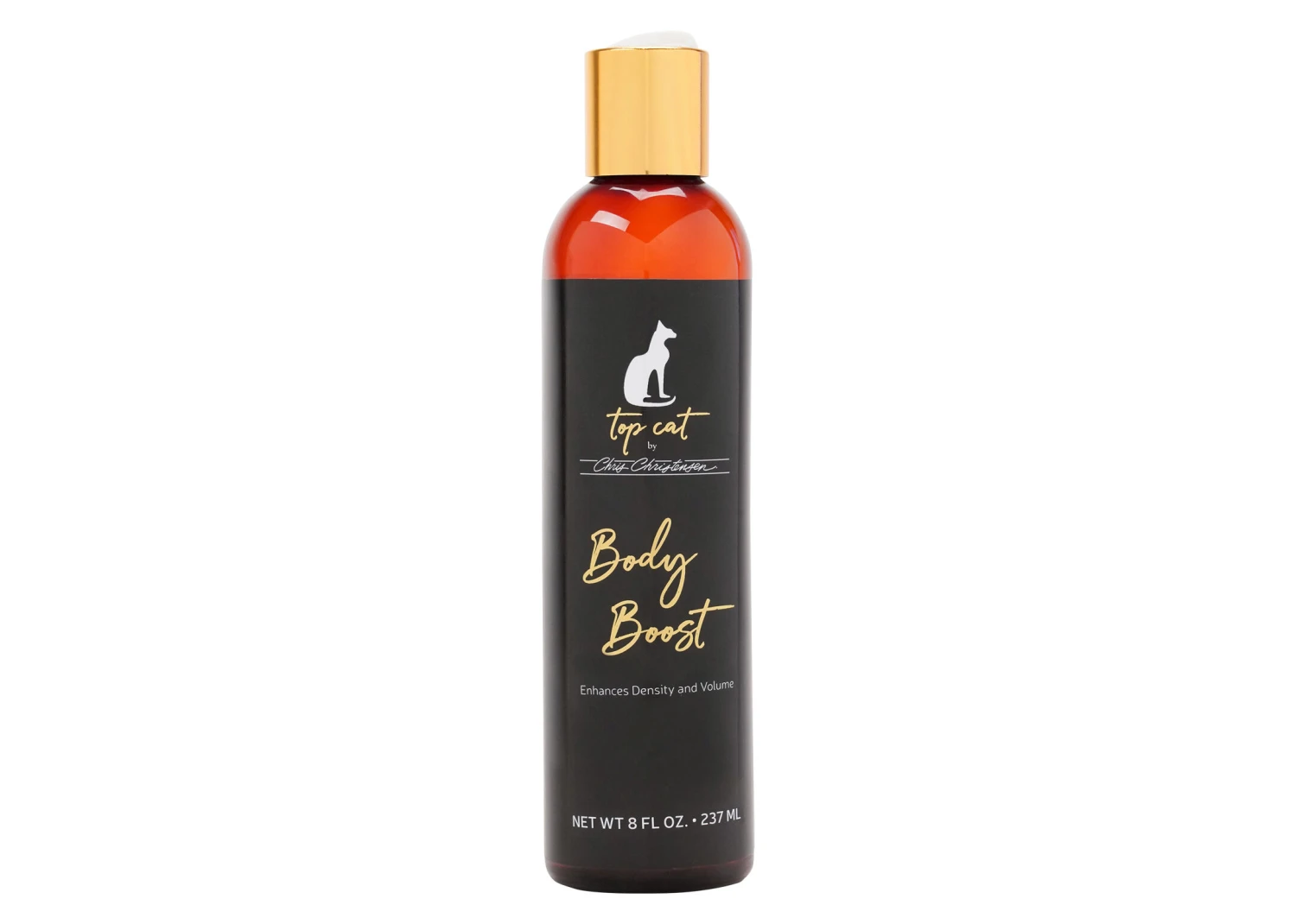 If you’re looking to improve coat condition and density of your cat, Chris Christensen Systems Topcat Body Boost Coat Treatment is the product for you. This protein-rich treatment hydrates and repairs damage in coats while creating a natural looking volume boost. Using high volume low molecular weight proteins, this treatment creates striking volume while also repairing split ends.Â