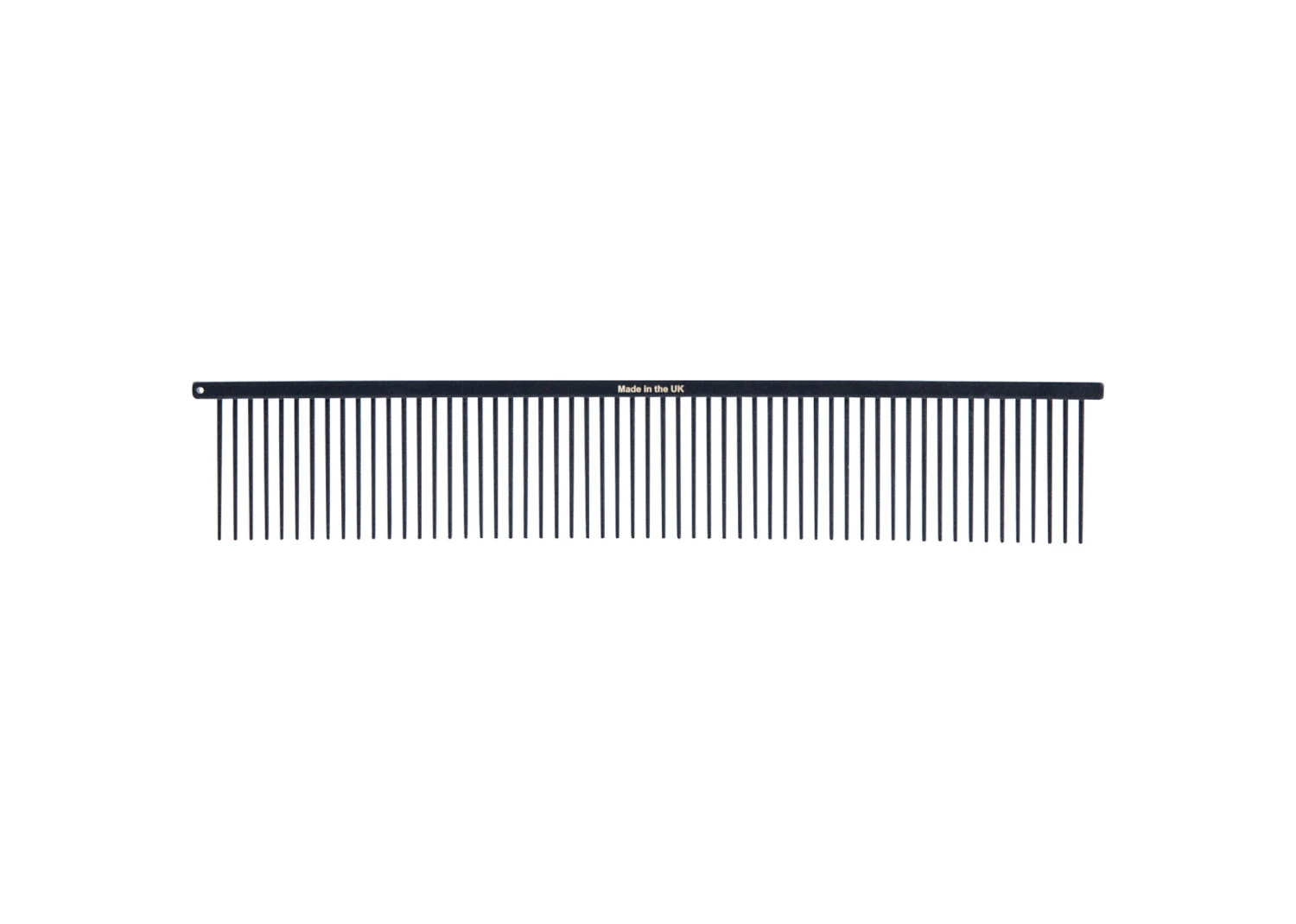 This Gun Metal comb is 25cm long with coarse teeth. Perfect for grooming double-coated pets, this comb has longer teeth at 38mm that can penetrate the topcoat to reach the undercoat with ease, helping to remove matts and tangles.