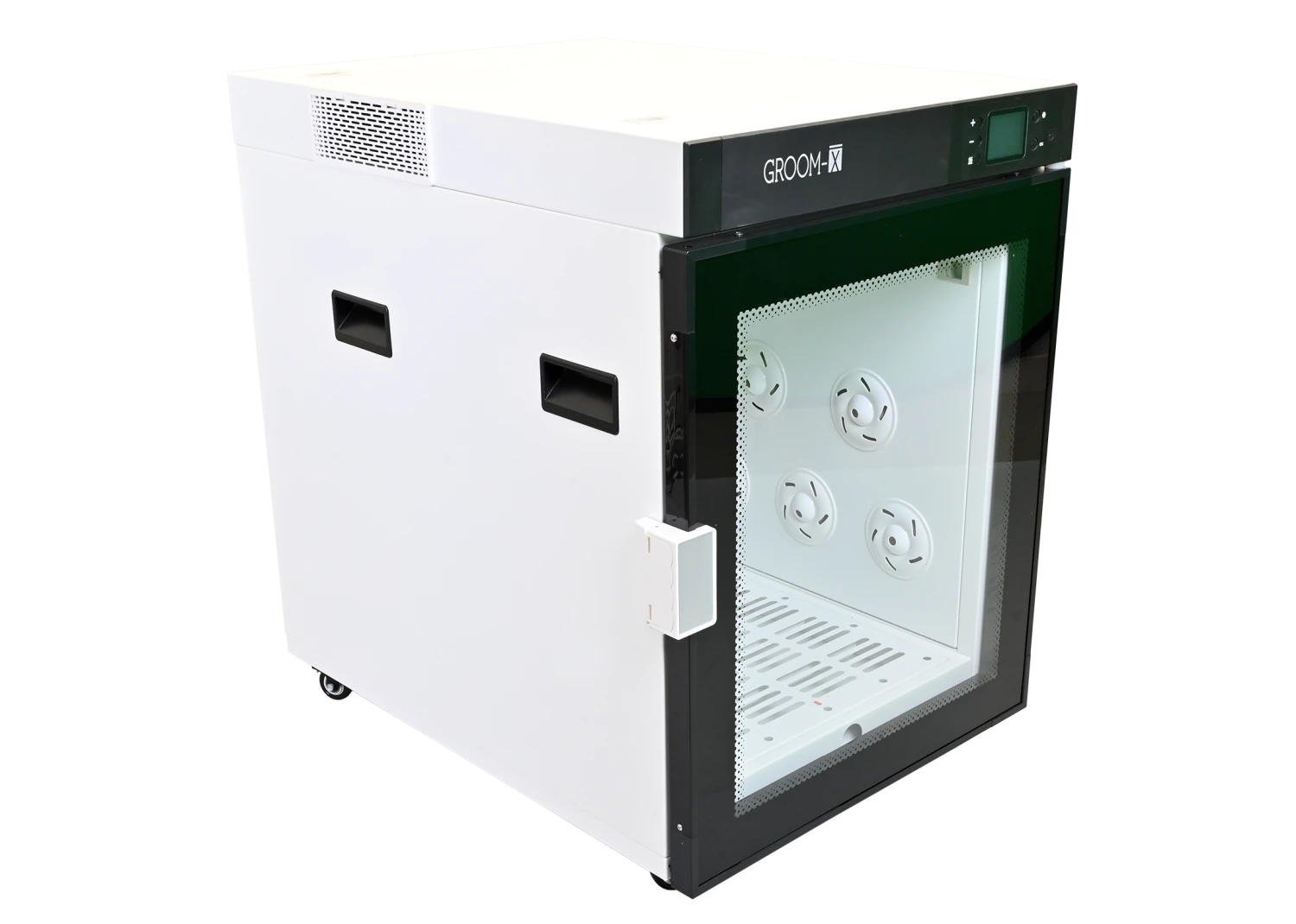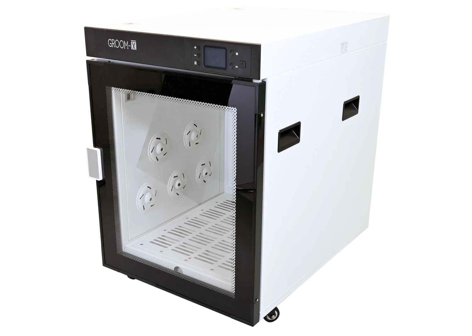 Drying dogs (or cats) is time consuming and is often the longest part of the whole grooming process. Whether you are a breeder, handler, groomer or pet owner, there is no doubt that you want to work as quickly and efficiently as possible. Are you a professional groomer and would you like to save precious time in your salon? Do you have a pet with a long or thick coat? Then this is definitely your dream solution. The Groom-X Professional Cabin Dryer Compact helps you to dry all breeds of dogs and cats in no time!
