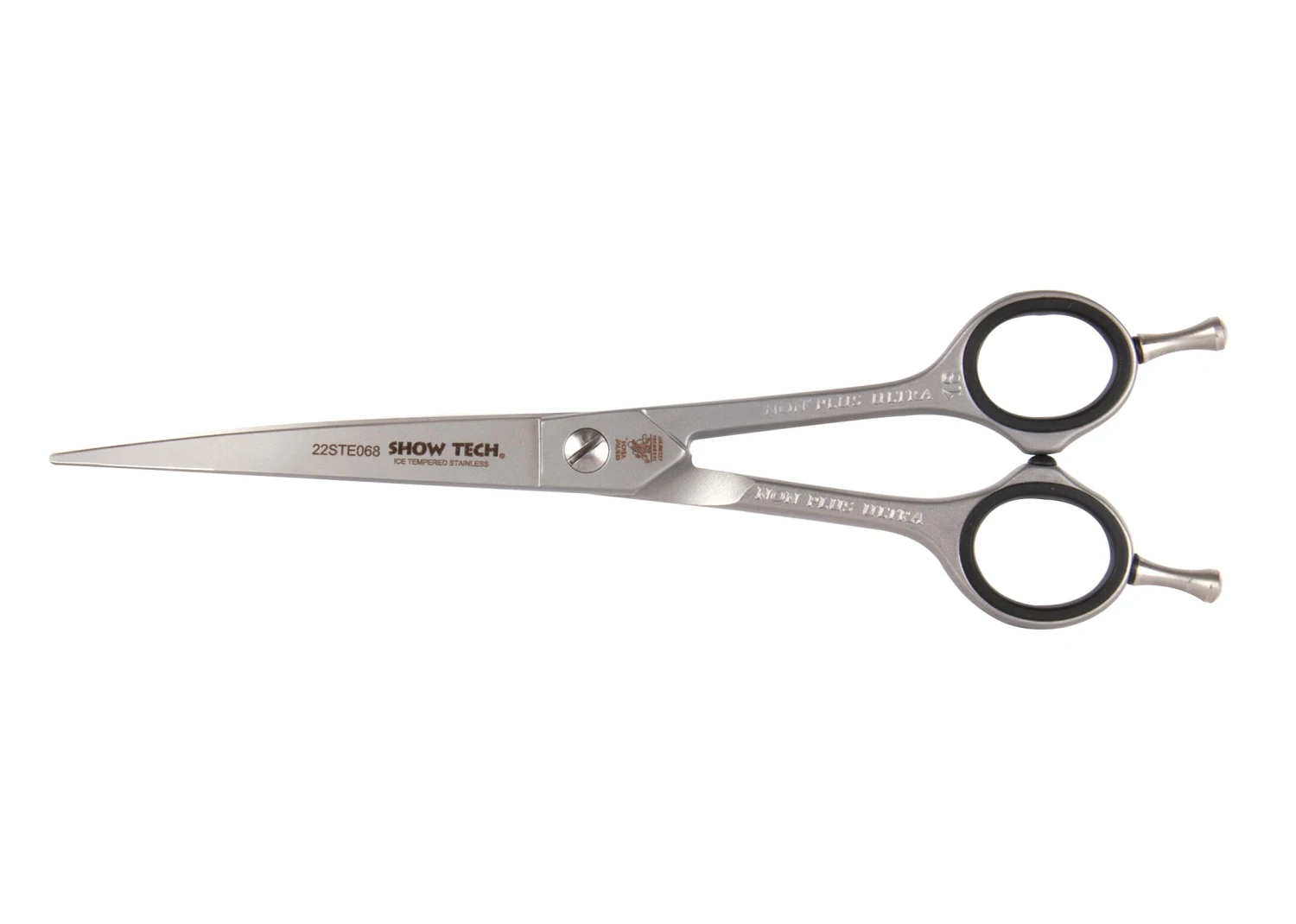These short shank shears made in Solingen for Show Tech are ergonomically designed to reduce hand fatigue while improving performance. The shorter shank means the groomer needs less movement of the thumb to achieve the same opening of the shear, allowing them to work faster and longer, improving efficiency and reducing fatigue. Available in 18cm – 7” straight and curved.