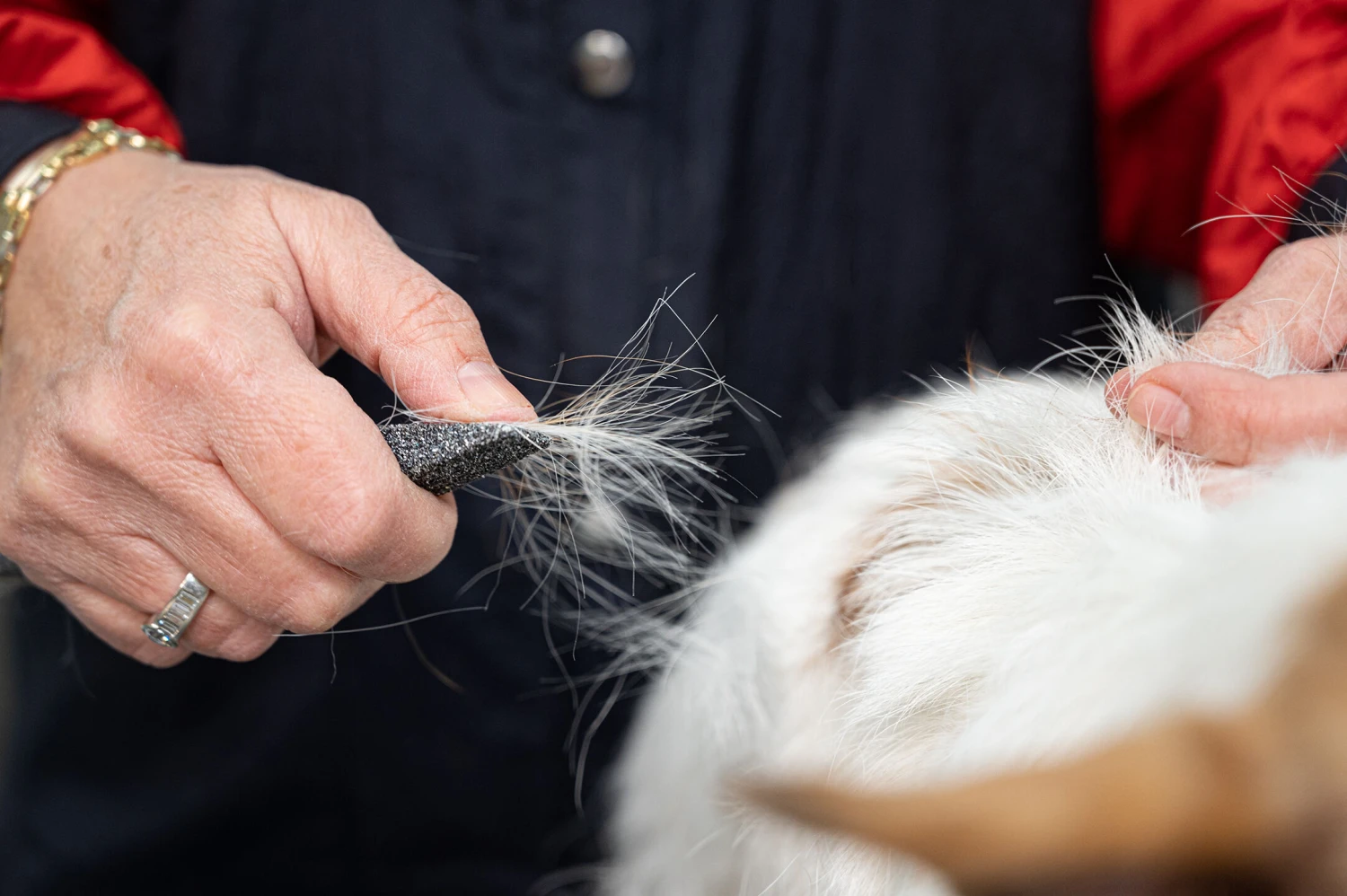 The Show Tech Comfy Stripping Stick works like a stripping stone. It’s ideal for hand stripping and sculpting difficult wire-coated breeds and if every hair is important and needs to be stripped from tip to root without damaging the coat.Â