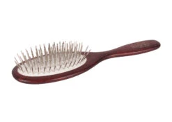 This special pin brush from Show Tech features thicker, more widely spaced pins and is ideally suited to breeds with dense or double coats. The smooth, rounded tips of the pins effortlessly penetrate the thicker hair and aid the removal of tangles.