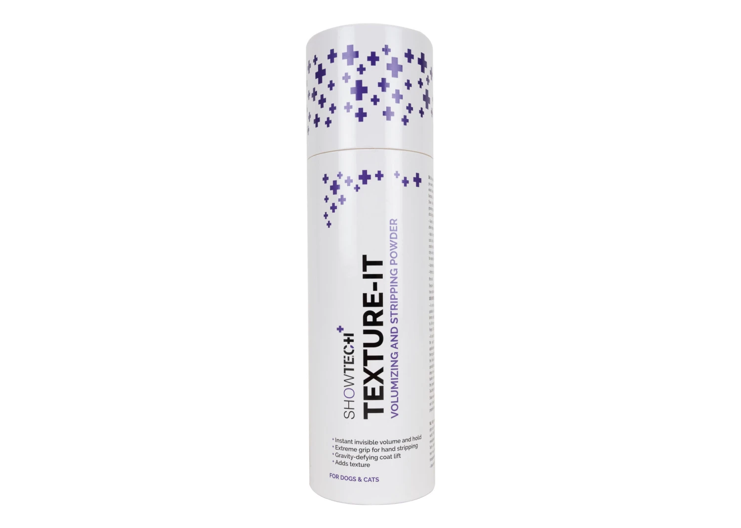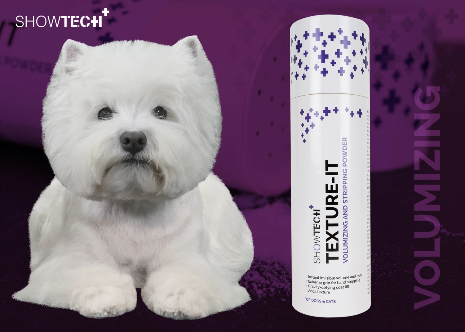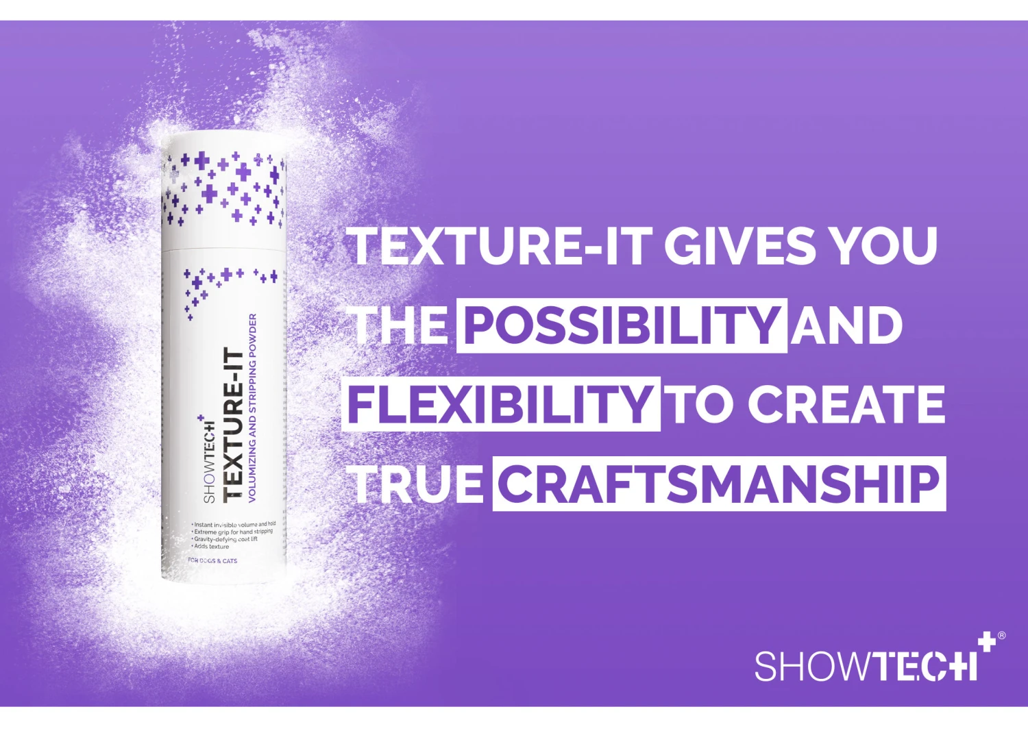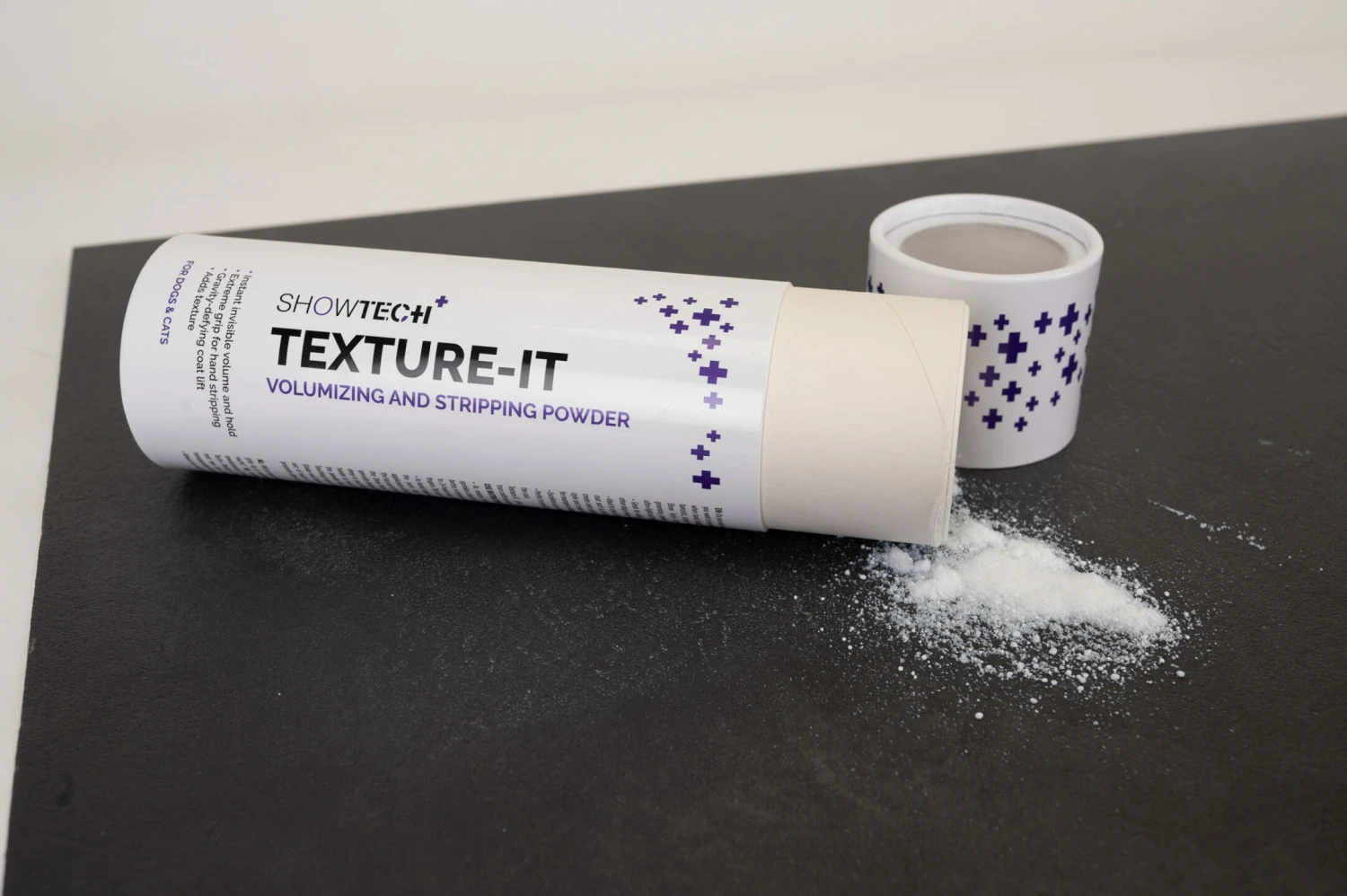 Do you wish to create more texture and volume or do you want to have better grip on your wiry-haired dog when hand stripping its coat? We have developed a fantastic, simply revolutionary product for you: the transparent Show Tech+ Texture-IT Powder!Â