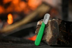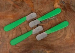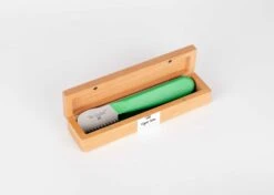 - The blade is made from a high-quality metal alloy that is stronger and lighter than other stripping knives – each knife weighs only around 30 grams! The beech wood used to make the handle comes from sustainable European forests and the varnish is FCS approved and safe for the environment.