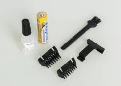This bright-coloured, tiny, lightweight trimmer can be easily stored and fits perfectly into any jacket pocket or handbag, which makes it great for taking with you to dog competitions or shows. It operates autonomously on one AA battery and its fine, stainless-steel precision blade has one cutting length (0.6 mm).