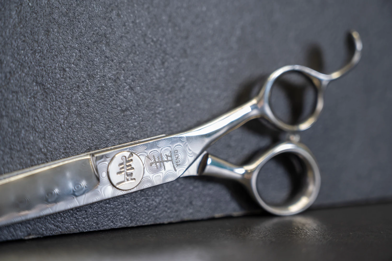 Japanese Damascus steel is renowned the world over and is famously used in Samurai swords because of its strength and hardness. This unique steel is rare, but easily distinguished by the “raindrop” pattern in the metal. Yento Damascus shears are completely hand made and go through more than 160 individual processes to produce the ultimate cutting tools. Blades are razor sharp and the comfortable, offset handles on short shanks make these shears essential equipment for professional use. The straight Damascus can be used for both heavy duty scissoring and finishing whereas the single thinner is the ultimate blending and finishing shear.