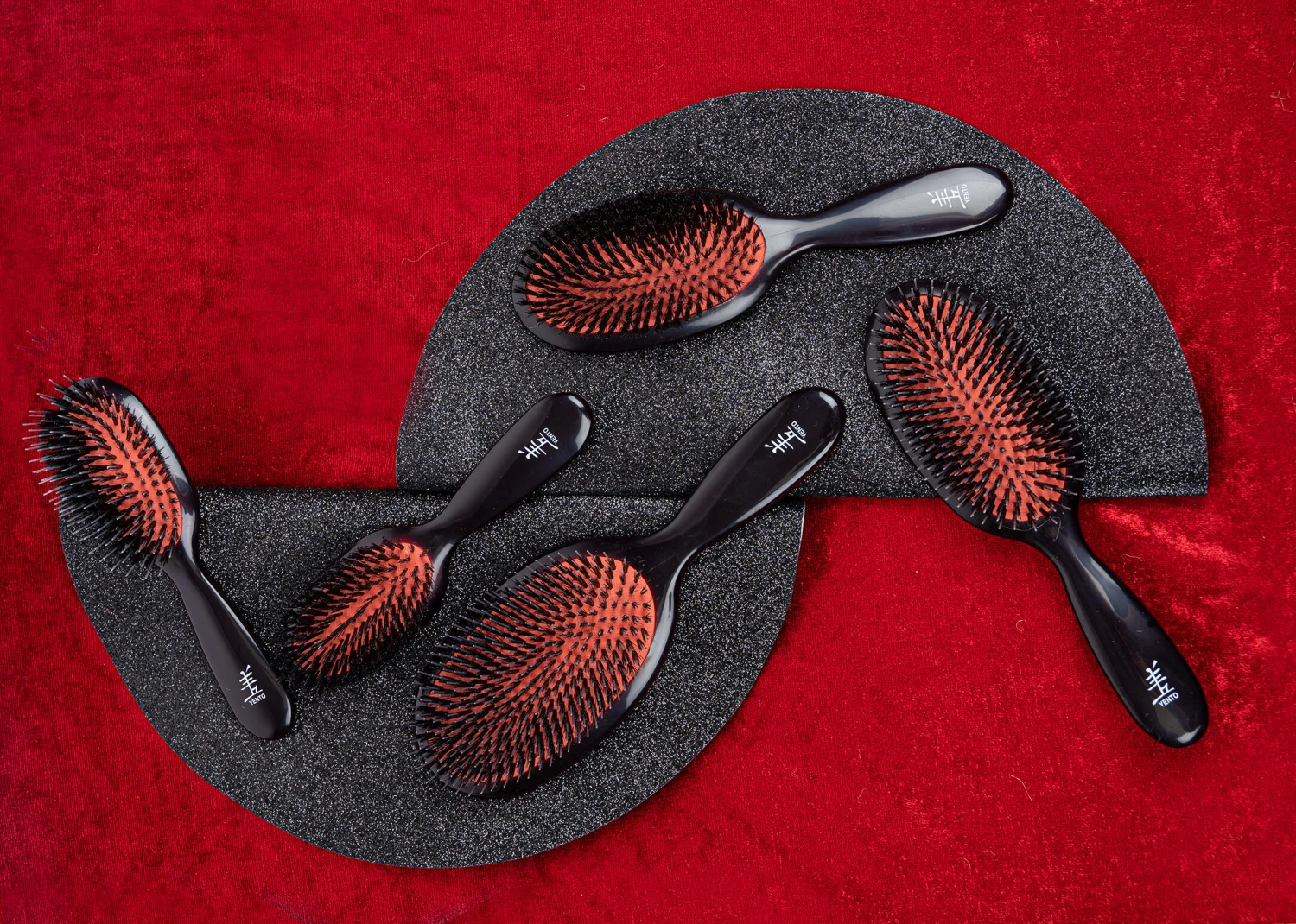Yento brushes are the first professional brushes of their kind to be made especially for dogs. These brushes are of outstanding quality, using only the best pure natural boar hair bristles. The unique properties of the pure boar hair cleans while brushing, leaving the coat with a healthy, natural shine. Yento pure bristle is ideal for short or fine textured coats such as yorkshire terriers and maltese. Yento pure bristle with nylon is especially designed for long and thicker coats. The nylon strands aid penetration in denser hair such as bearded collies and Tibetan terriers. All Yento brushes are manufactured to exacting standards by experienced craftsmen and are guaranteed for one year from the date of purchase.